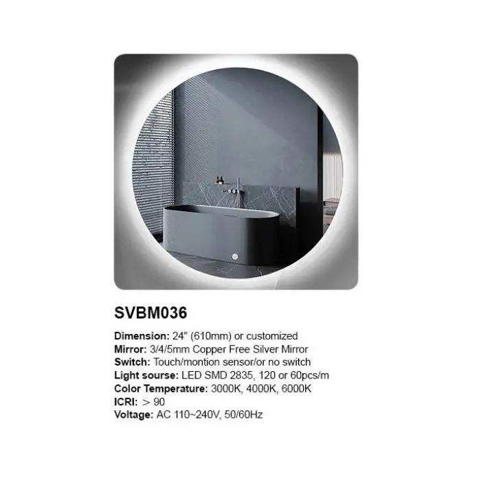 Okruglo LED ogledalo SVBM036 R610 SUN je spoj funkcionalnosti i moderne estetike. Sa svojim prečnikom od 61 cm i integrisanim LED osvetljenjem koje podseća na sunčev oreol, ovo ogledalo postaje centralna tačka svakog kupatila ili toaletnog stočića.